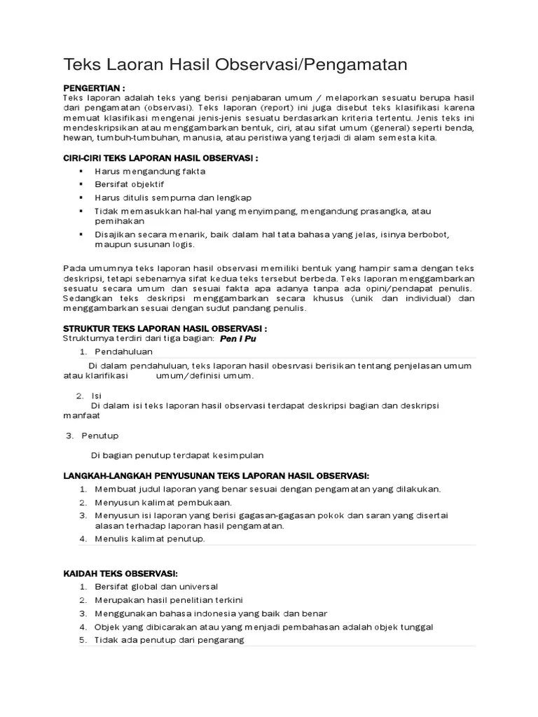 Apa Yang Dimaksud Dengan Isi Teks Laporan Hasil Observasi / Pengertian Ciri Ciri Struktur Dan Contoh Teks Laporan Hasil Observasi Ragam Bola Com : Informasi itu bisa meliputi objek tentang keadaan alam, keadaan lingkungan, hewan, tumbuhan, sosial, sebuah peristiwa, kesenian, dan kebudayaan.